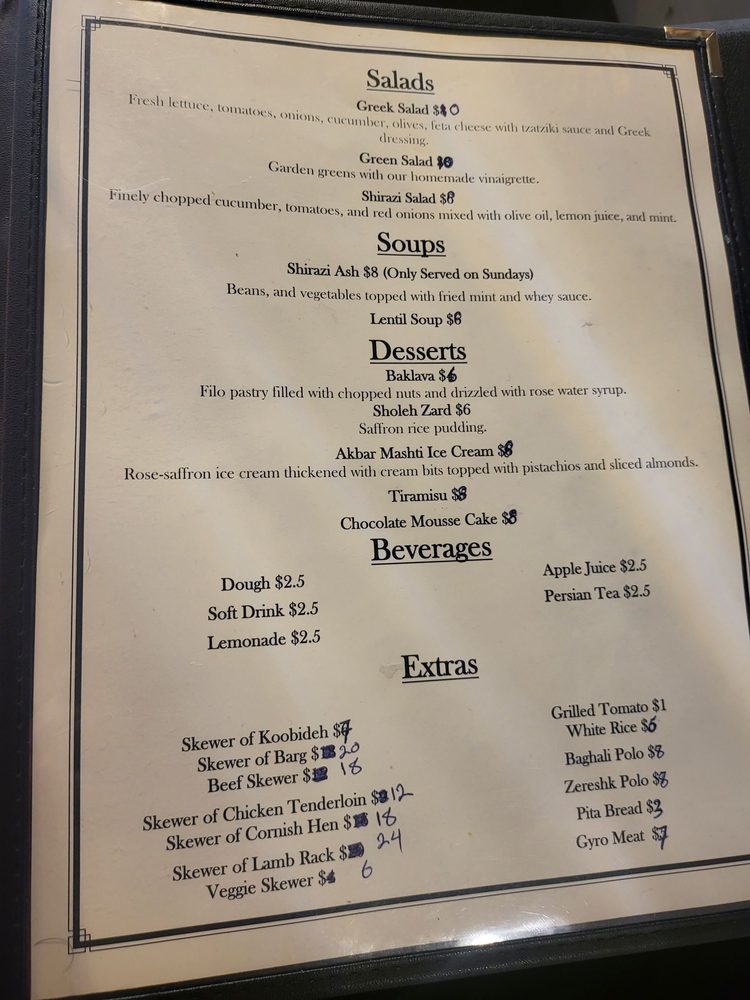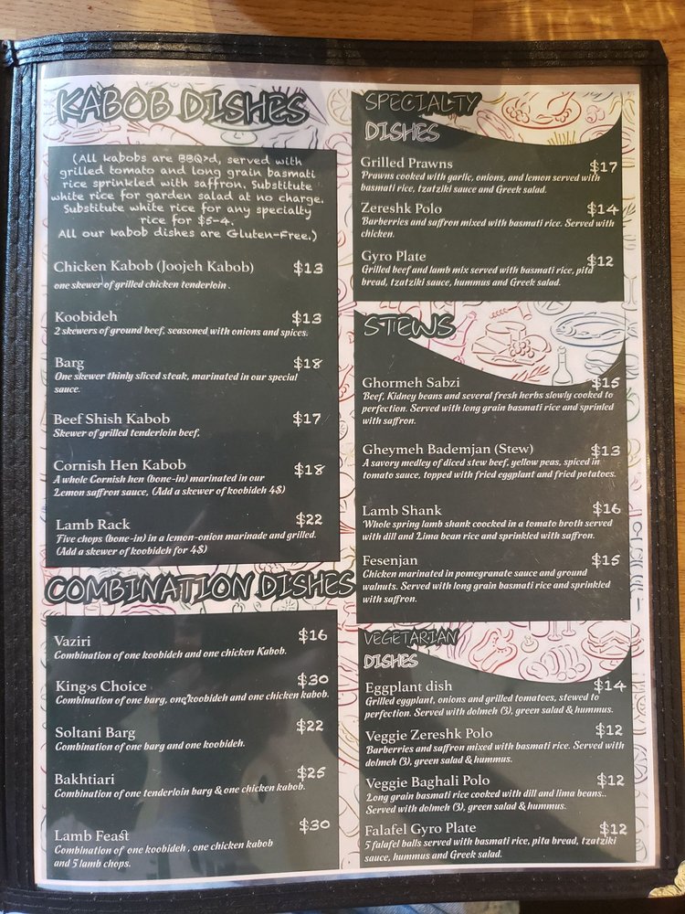 A whole cornish hen (bone-in) marinated in our lemon saffron sauce. Add koobide skewer for an additional charge.