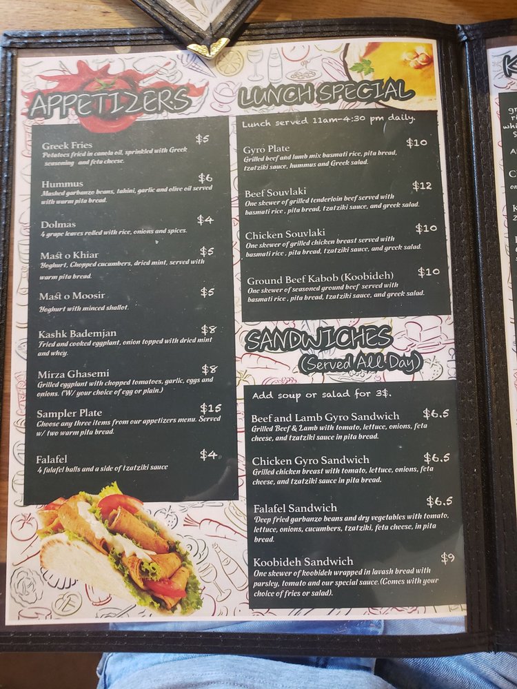 1 skewer of koobideh wrapped in lavash bread with parsley, tomato and our special sauce.