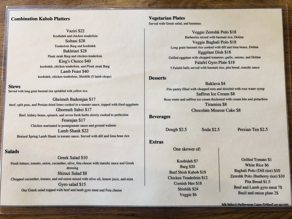 Bella Balducci’s Mediterranean Cuisine in Kirkland, WA offers a variety of Mediterranean and Persian/Iranian dishes. The restaurant provides a range of utilities, including reservation options, delivery, and takeout services. With many vegetarian options available, Bella Balducci’s caters to a diverse range of diners. The menu features delicious lunch appetizers like Greek Fries and Hummus, as well as Lunch Specials such as Chicken Souvlaki and Gyro Plate. For sandwich lovers, the Beef and Lamb Gyro Sandwich and Chicken Gyro Sandwich are popular choices. Bella Balducci’s also offers catering services for groups and provides a casual dining experience with waiter service. The restaurant is wheelchair accessible and has gender-neutral restrooms, ensuring inclusivity for all guests. Bella Balducci’s Mediterranean Cuisine is a great spot for a tasty and fulfilling lunch or dinner.
